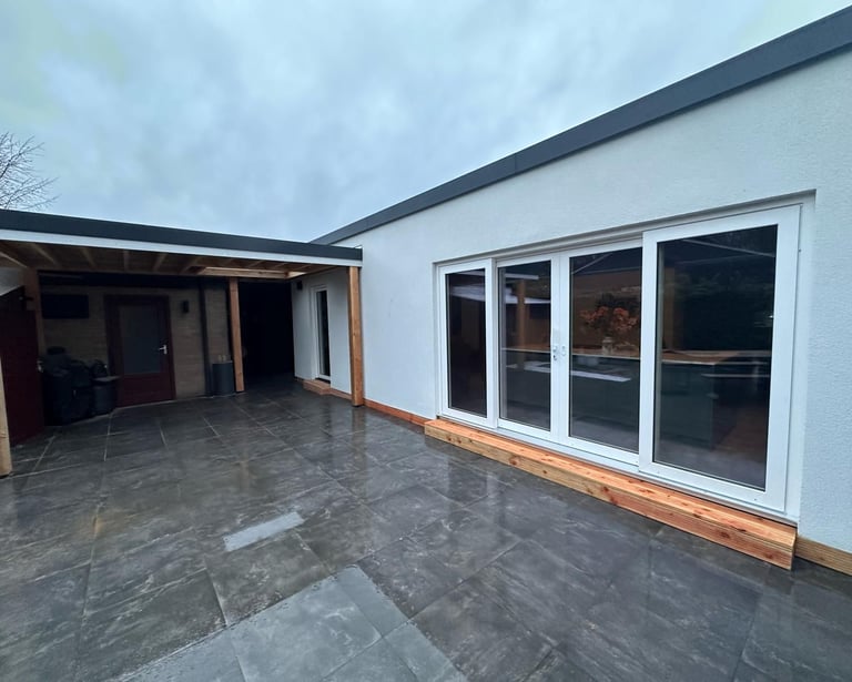 Ruime aanbouw die perfect aansluit op de bestaande woning en zorgt voor een comfortabele leefomgeving.