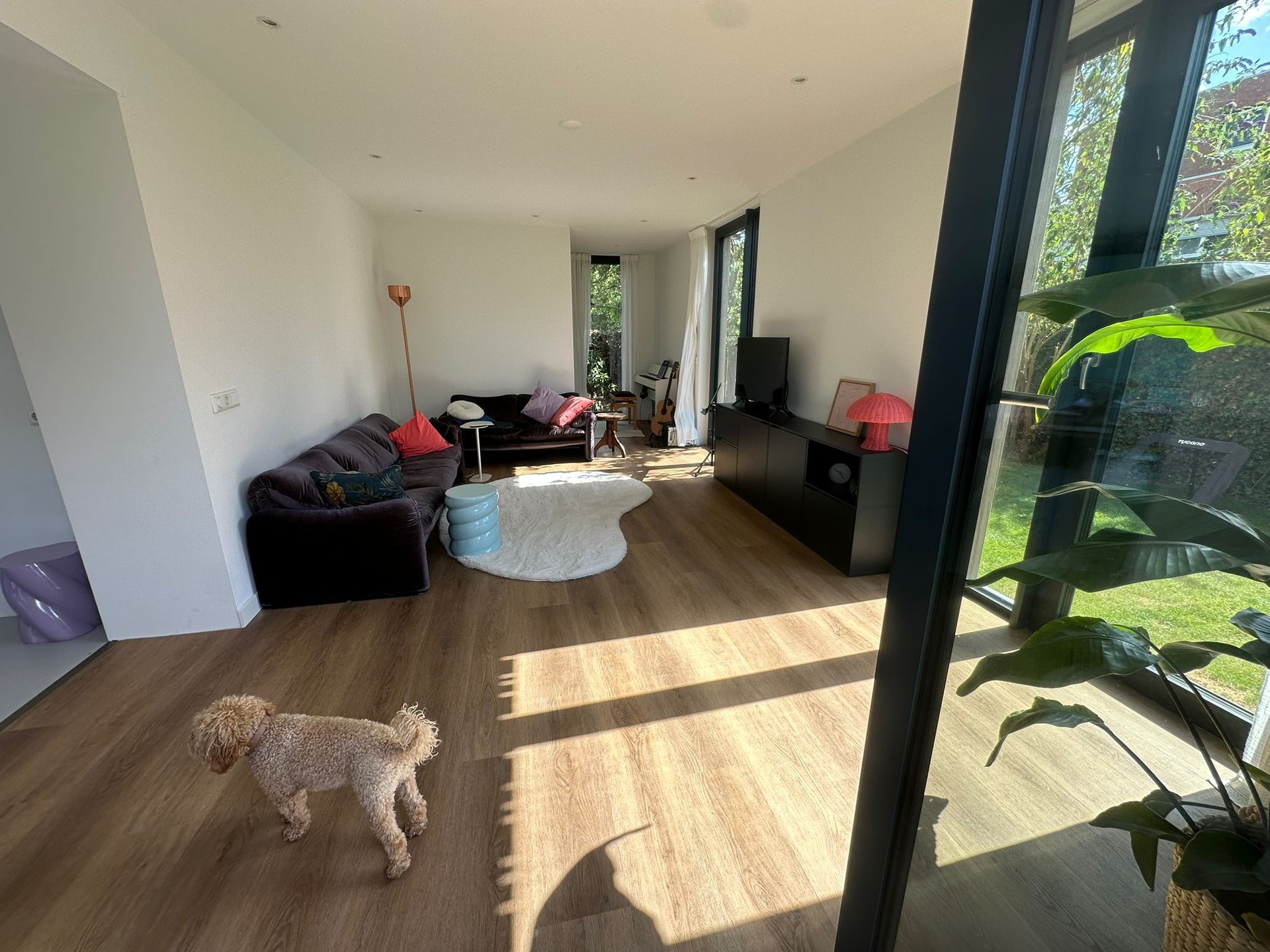 De combinatie van moderne materialen, grote raampartijen en een slimme indeling zorgt voor een open en lichte leefruimte die de woning aanzienlijk verrijkt.