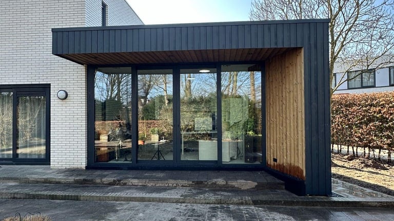 Het resultaat is een moderne aanbouw die zowel esthetisch als technisch perfect aansluit op de woning.